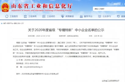 根據(jù)《山東省“專精特新”中小企業(yè)認定管理辦法》(魯工信發(fā)〔2020〕7號)、《關(guān)于組織申報2020年度山東省“專精特新”中小企業(yè)和對往年“專精特新”中小企業(yè)進行復(fù)核的通知》等文件精神,省工業(yè)和信息化廳組織開展了2020年度省級“專精特新”中小企業(yè)評選工作。經(jīng)主管部門推薦、專家評審等程序,確定我公司為2020年度省級“專精特新”中小企業(yè)。